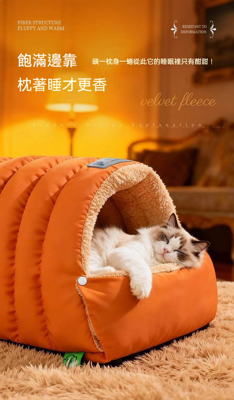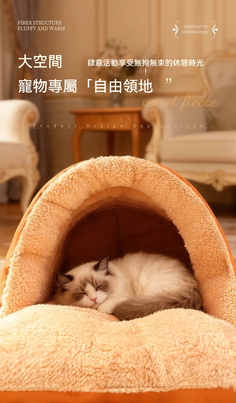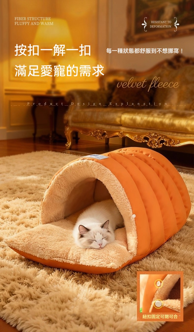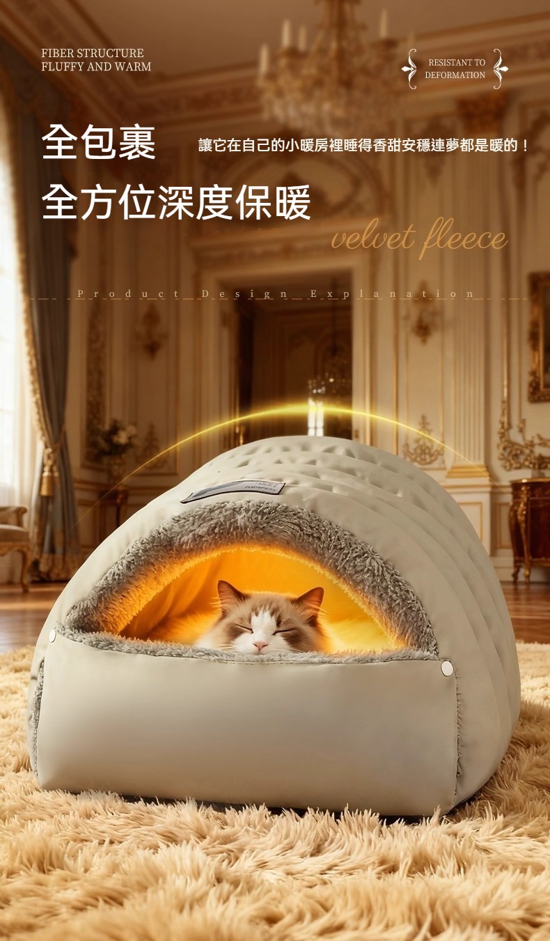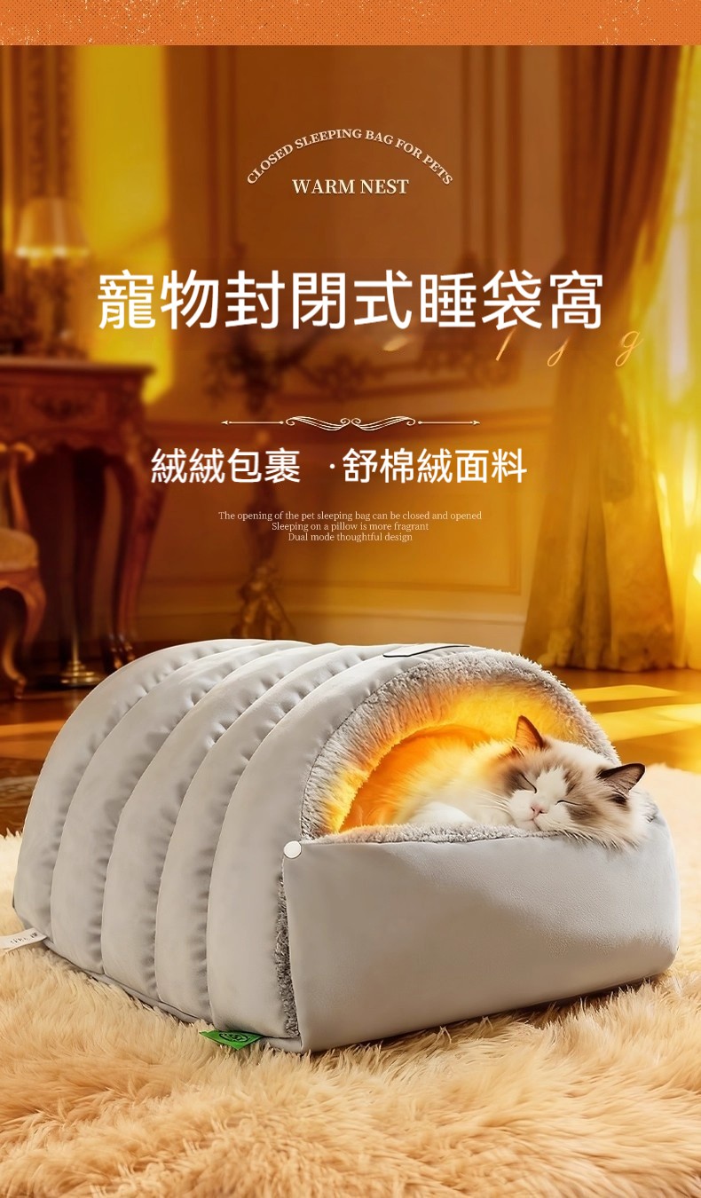 寵物冬天必備!寵物雙模式開合封閉式睡袋 貓狗通用「半封閉皮革睡袋窩」絨裡+皮革面,一窩兩用,主子鑽進去就舒服到不想出來~