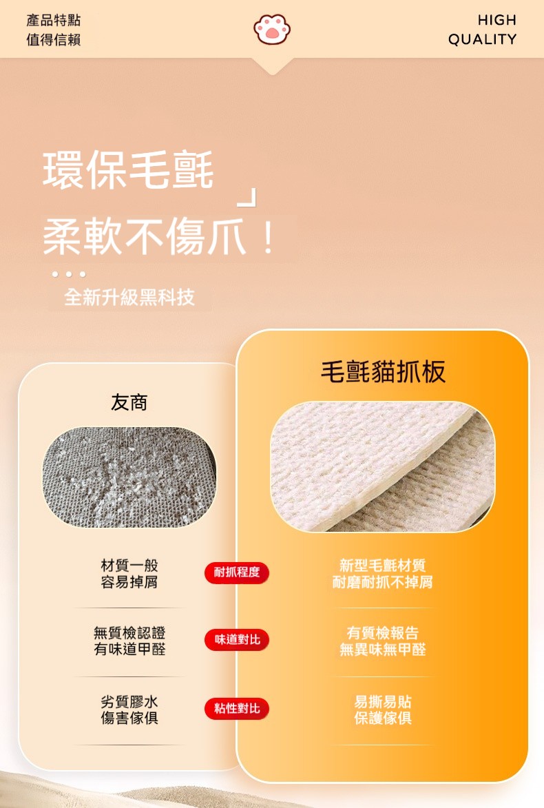 喵星人磨爪站!自帶背膠一貼~沙發、牆角、桌腳攏變無敵抓板,抓不壞黏牢牢✨✅ 健康環保毛氈✅超強背膠黑科技✅耐抓耐磨不掉屑✅ 站姿磨爪更舒適