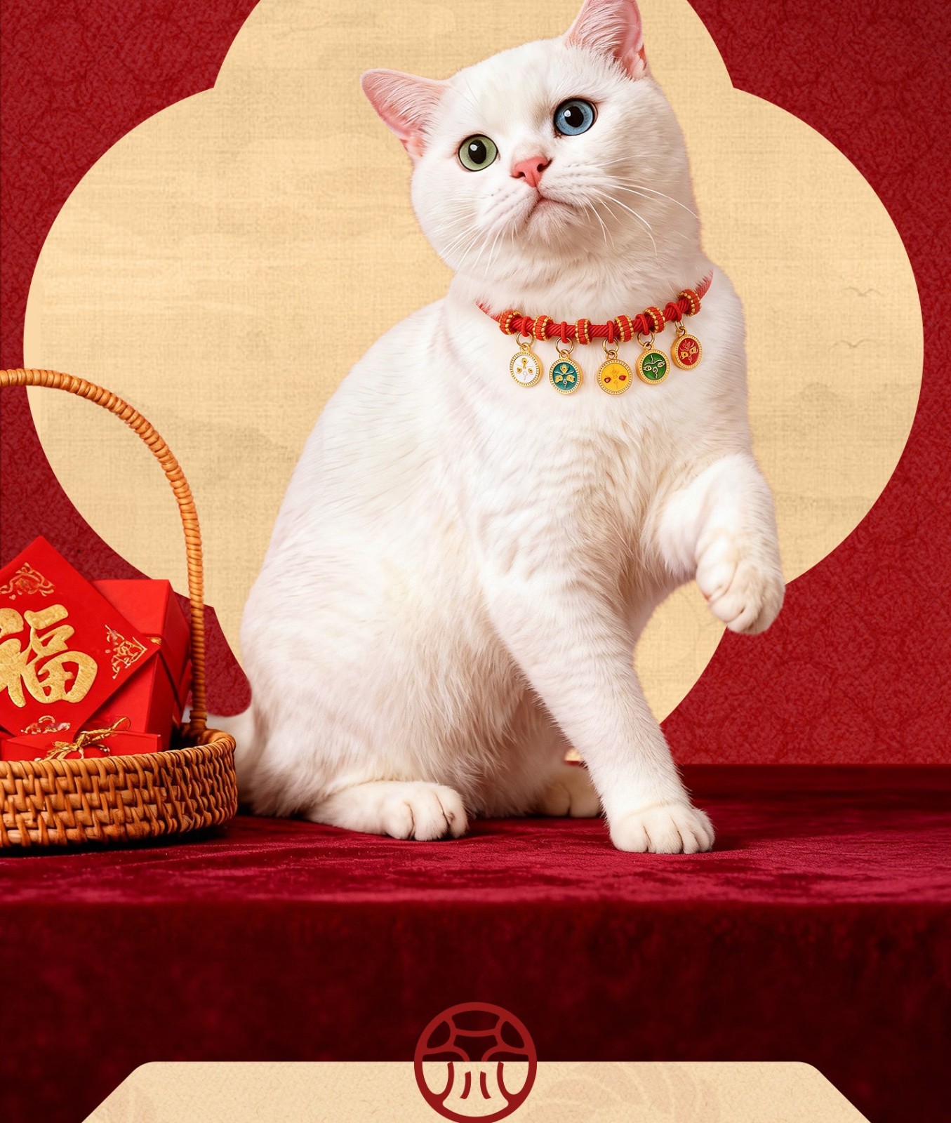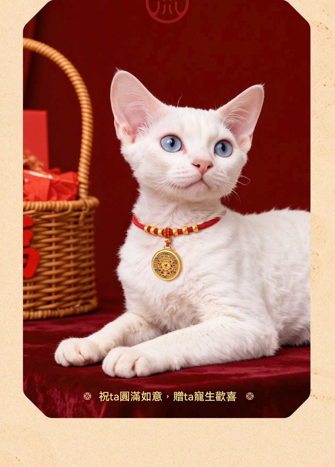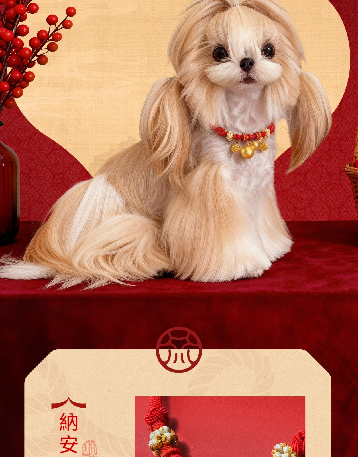 寵物年味穿搭必備!「長命鎖平安項圈」實心小金珠+喜氣紅繩,毛孩戴上秒變吉祥萌寶