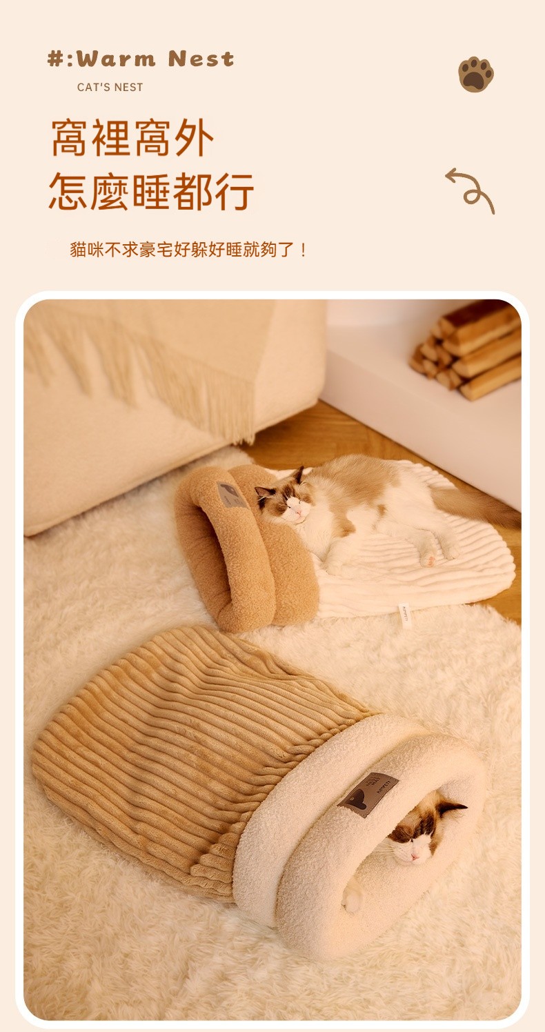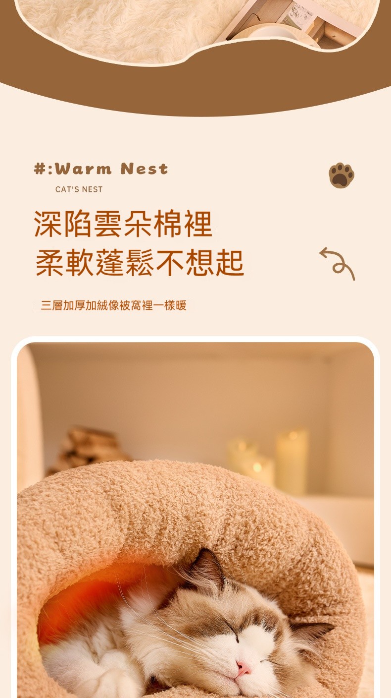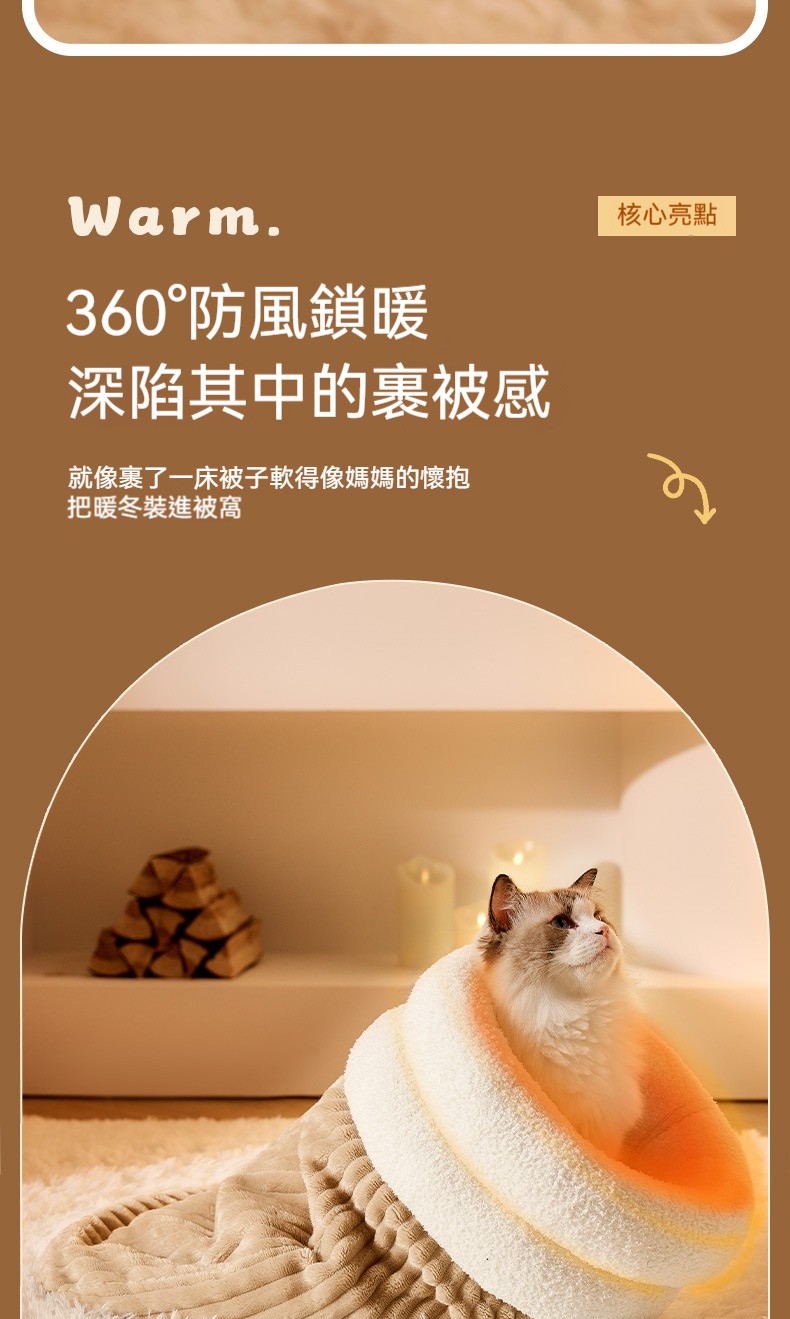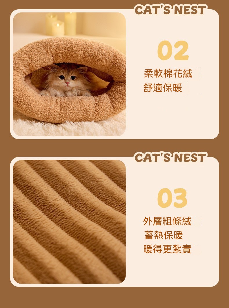 主子冬日必備!「鑽洞絨毛貓窩」三層加厚像裹棉被,360°鎖暖防風,喵星人一躺進去就呼嚕到天亮~