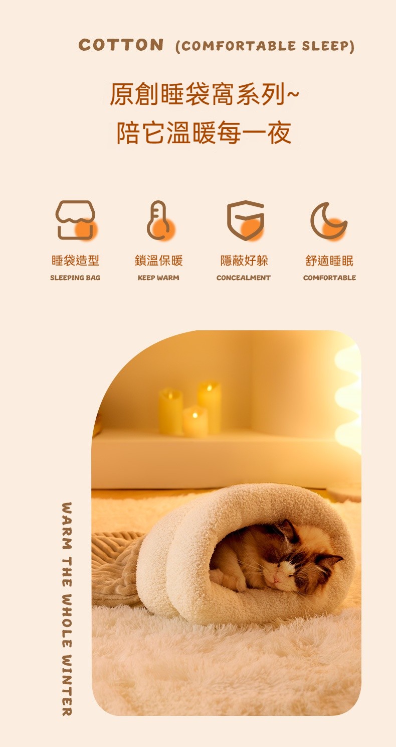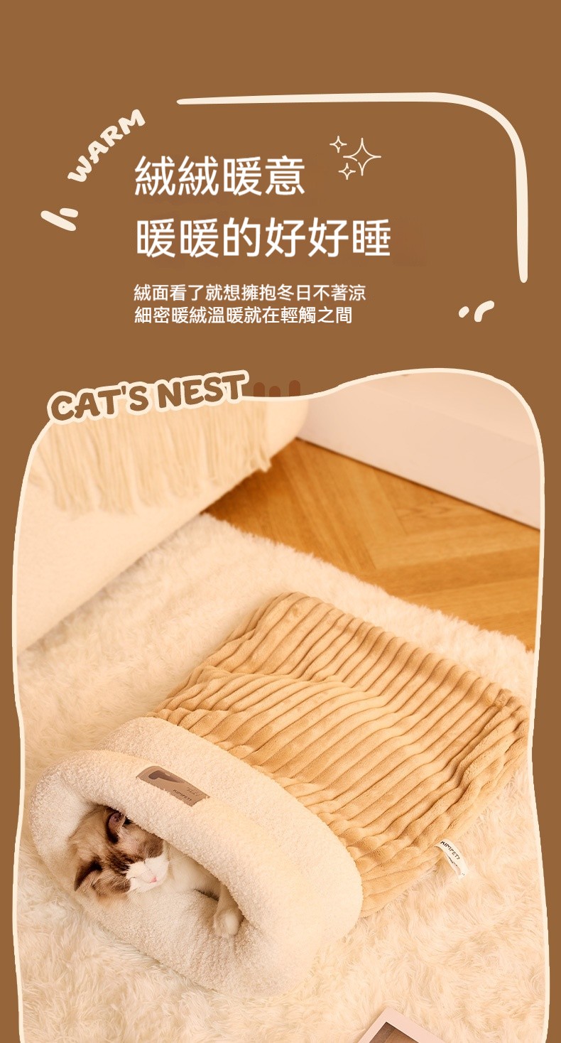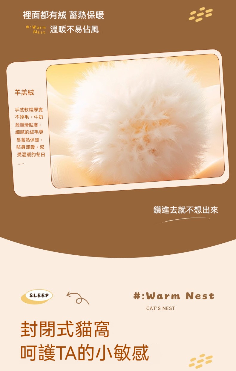 主子冬日必備!「鑽洞絨毛貓窩」三層加厚像裹棉被,360°鎖暖防風,喵星人一躺進去就呼嚕到天亮~